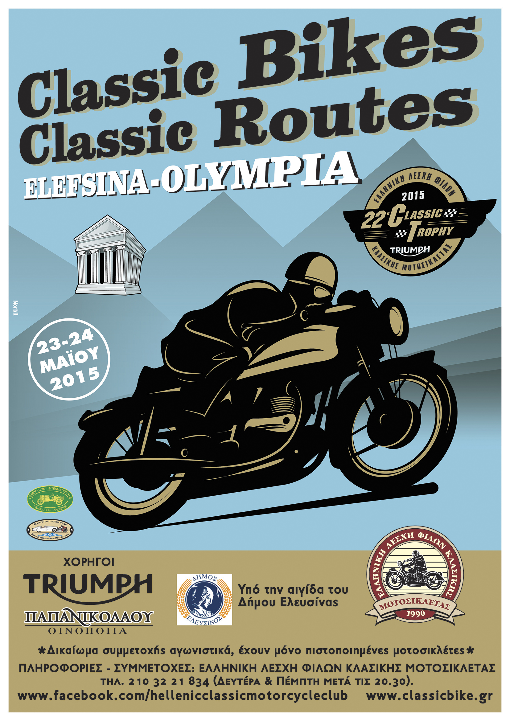 H Ελληνική Λέσχη Φίλων Κλασικής Μοτοσικλέτας διοργανώνει το διάστημα 23-24 Μαΐου το 22ο Classic Trophy. Πρόκειται για ένα κλασικό ράλι που διοργανώνεται κάθε άνοιξη και ταξιδεύει τους φίλους που συμμετέχουν από μαγευτικές διαδρομές.
