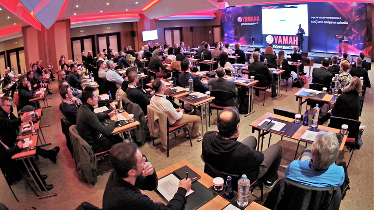 Για τα συγκριτικά πλεονεκτήματα των συνεργείων και την αναβαθμισμένη εμπειρία υποστήριξης των πελατών Yamaha μίλησε ο τεχνικός διευθυντής κ. Ανδρέας Κοσκινάς. Ιδιαίτερη ενότητα Racing με ανασκόπηση των αγωνιστικών επιτυχιών και παρουσίαση των νέων αγωνιστικών ομάδων 2019 παρουσίασε η υπεύθυνη αγωνιστικού κα Νάνσυ Λίνα. Για τη νέα οπτική ταυτότητα και τα βασικά πρότυπα καταστημάτων που θέτει η Yamaha σε παγκόσμιο επίπεδο και πώς εφαρμόζονται ήδη στην Ελλάδα μίλησε η κα Δήμητρα Καφρομάνη, υπεύθυνη διαχείρισης προτύπων δικτύου συνεργατών. Την πολιτική πωλήσεων για το 2019 ανέλυσε ο διευθυντής πωλήσεων του κλάδου Yamaha κ. Θανάσης Νέζης.
