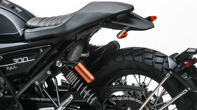Το πλαίσιo είναι ένα απλό κλειστό σωληνωτό, με το μεγαλύτερο ενδιαφέρον να παρουσιάζει η εμφάνιση. Κλέβοντας τις πρωτότυπες γραμμές του FB Mondial HPS 125 Hipster, χρησιμοποιεί καμπύλες και γωνίες έτσι όπως μόνο οι Ιταλοί ξέρουν να κάνουν. Στην περίπτωση των HPS 125 και 300 οι σχεδιαστές έχουν καταφέρει να αναμίξουν στοιχεία από cafe racer και scrambler μαζί. Απλά παρατηρήστε την καρίνα κάτω από τον κινητήρα, το κλιπόν τιμόνι και το μονόσελο και συνδυάστε το με τις δύο εξατμίσεις που ολοκληρώνονται σε δύο τελικά που βγαίνουν ψηλά δεξιά. Έτσι το αισθητικό αποτέλεσμα μεταφέρει στο θεατή δυναμισμό και μοτοσυκλετιστική κουλτούρα, δένοντας παράλληλα τη μοτοσυκλέτα με το ένδοξο παρελθόν της εταιρίας. Το ανάποδο πιρούνι έχει καλάμια 41mm και στον πίσω τροχό δύο αμορτισέρ λαδιού-αερίου συνεργάζονται με ένα ευμεγέθες ψαλίδι. Τα φρένα είναι κυματιστά δισκόφρενα με διάμετρο 280mm και ακτινική δαγκάνα 4 εμβόλων μπροστά και 220 mm πίσω με δαγκάνα 2 εμβόλων, καθώς και σύστημα ABS. Οι τροχοί είναι 17 ιντσών και το βάρος της 300 φτάνει τα 133 κιλά.