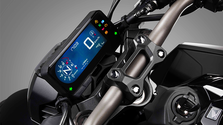 Ο χαρακτηριστικός στρογγυλός προβολέας και το ανάγλυφης μορφής ρεζερβουάρ καυσίμου είναι κατά βάση τα στοιχεία που υπογραμμίζουν την αισθητική Neo Sports Café. Όμως η όλη premium εμφάνιση συνοδεύεται και από ανάλογες προηγμένες προδιαγραφές, που στην περίπτωσή μας μεταφράζονται σε ύπαρξη συστήματος Honda Selectable Torque Control και συμπλέκτη περιορισμένης ολίσθησης με υποβοήθηση.