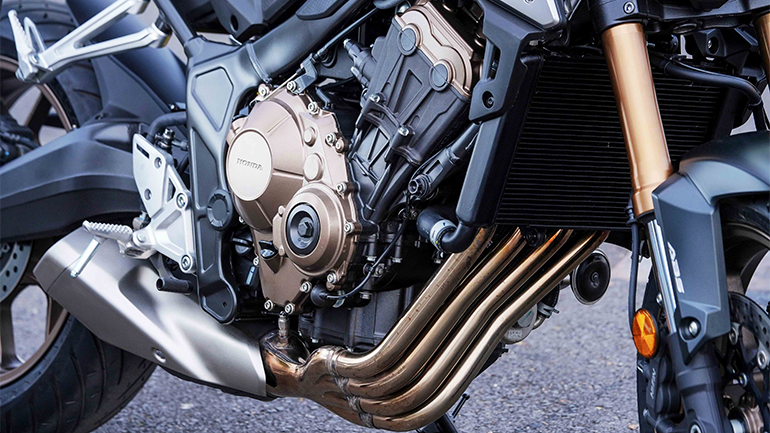 Ο κινητήρας του CB650R διαθέτει 4 κυλίνδρους σε σειρά, 2ΕΕΚ και 16 βαλβίδες, με τη λειτουργία του να είναι χαρακτηριστική Honda, κοινώς απόλυτα γραμμική και εκμεταλλεύσιμη. Η ισχύς του φτάνει τους 95,2Ηp, ενώ η ροπή αγγίζει τα 64Nm. Οι κοντές σχέσεις και η γεμάτη απόδοση στις μεσαίες στροφές παρέχουν εξαιρετικές τιμές επιταχύνσεων, τόσο από στάση όσο και εν κινήσει, αδιαφορώντας για την επιλεγμένη σχέση στο κιβώτιο. Ο συμπλέκτης assist/slipper προσφέρει εύκολες και ακόμα πιο ακριβείς αλλαγές ταχυτήτων και το σύστημα ελέγχου πρόσφυσης HSTC εξασφαλίζει την ιδανική πρόσφυση στον πίσω τροχό. Το ρυθμιζόμενο ανεστραμμένο πιρούνι (SFF) 41mm της Showa προσφέρει την απαιτούμενη λειτουργία και δίνει στον αναβάτη πολύ καλή αίσθηση του μπροστινού τροχού.