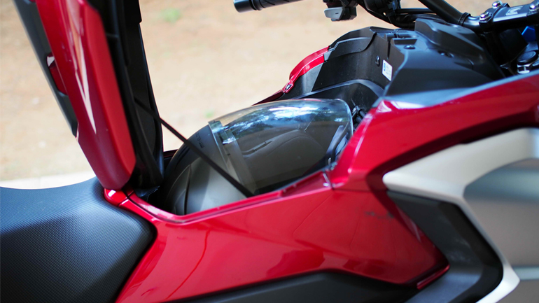 Το ότι είναι δίχρωμο και καλοφινιρισμένο είναι τα πρώτα δυο πράγματα που παρατηρείς πάνω στο NC. Με έντονα τα ασημένια πλαϊνά καπάκια του ρεζερβουάρ και συνολικά αιχμηρό design δεν τρομάζει το μάτι με υπερβολές. Παράλληλα, όλη η εμφάνιση αποπνέει μια πολυτέλεια, με την ποιότητα κατασκευής να είναι πάνω από το μέσο όρο, ενώ πρέπει να παραδεχτούμε ότι δεν υπάρχει πάνω στη μοτοσυκλέτα κάποια εξεζητημένη τεχνολογική λύση: το πλαίσιο είναι κοινό σωληνωτό, το πιρούνι συμβατικό και το ψαλίδι… όχι από αλουμίνιο. Ενδιαφέρον έχει οπτικά το γεγονός ότι η αριστερή πλευρά της μοτοσυκλέτας είναι “ξυρισμένη”, λείπει δηλαδή ο συμπλέκτης και το λεβιέ ταχυτήτων. Εξαιρετικά χρήσιμος –και μεγάλο πλεονέκτημα έναντι του ανταγωνισμού– είναι ο αποθηκευτικός χώρος εκεί που στις άλλες μοτοσυκλέτες βρίσκεται το ρεζερεβουάρ, με τη χωρητικότητα στα 22 λίτρα να μπορεί να φιλοξενήσει κράνος ή laptop και μικροπράγματα. Όμως ουδέν καλόν αμιγές κακού, καθόσον αυτή η χωροταξία έχει ένα μειονέκτημα. Η θέση του ρεζερβουάρ κάτω από τη σέλα του αναβάτη δεν του επιτρέπει να είναι μεγαλύτερο των 14 λίτρων, περιορίζοντας έτσι την αυτονομία. Ευτυχώς όμως που ο κινητήρας αποδείχθηκε ..αναπτήρας σε κατανάλωση, ισοφαρίζοντας την όλη απώλεια.