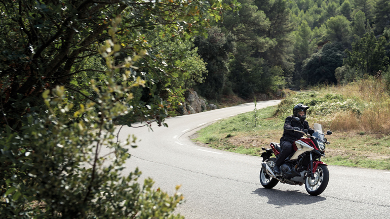 Παρότι η μέγιστη ιπποδύναμη είναι στους μόλις 55 ίππους (κοντά στους 50 στον τροχό), η πλήρης εκμετάλλευσή της αποφέρει μια διασκεδαστική οδήγηση. Χωρίς συγκινήσεις, αλλά διασκεδαστική. Με τις καλές μεσαίες στροφές να αναπληρώνουν ότι λείπει από τον κινητήρα στις ψηλότερες στροφές. Πάντως, ακόμα και με δύο άτομα στη σέλα, οι ενδείξεις στο ταχύμετρο δεν δυσκολεύονται να δείχνουν 160-170 χλμ/ώρα και για πολλή ώρα. Το πιρούνι της Showa αποδίδει σφιχτά, ίσως λίγο παραπάνω απ’ ότι έπρεπε για μια μοτοσυκλέτα που στοχεύει στην καθημερινή άνεση. Κάνει όμως καλή δουλειά κρατώντας το NC σε σταθερή πορεία. Το πίσω αμορτισέρ έχει πιο μαλακή ρύθμιση και έδειχνε να “κολλάει” στη συμπίεσή του σε δύσκολες περιπτώσεις, με την απόσβεση επαναφοράς να είναι αργή. Είναι ξεκάθαρο πως έχει ρυθμιστεί έτσι ώστε να προσφέρει άνεση πάνω από κάθε τι. Τα φρένα δεν έχουν αίσθηση και δύναμη στην αρχή του πατήματός του λεβιέ ή του πεντάλ, για μπροστά και πίσω αντίστοιχα, ενώ για το πίσω φρένο το ABS ενεργοποιείται πολύ γρήγορα. Όσον αφορά στο μπροστινό φρένο πιστεύουμε ότι δυο δίσκοι θα ήταν πολύ προτιμότεροι απ’ όλες τις απόψεις, αντί για το μονό που υπάρχει σήμερα. Σε καλή άσφαλτο και με προοδευτικά αυξανόμενη πίεση στη μανέτα, το 320άρι δισκόφρενο αρχίζει να επιβραδύνει δυνατά, τα καλάμια του πιρουνιού δείχνουν τάση μονόπλευρου τερματισμού και εκεί επεμβαίνει το ABS σώζοντας την κατάσταση. Αν ο δρόμος δεν έχει ομαλή επιφάνεια και πατήσεις δυνατά τα φρένα από πολλά χιλιόμετρα θα συνειδητοποιήσεις ότι οι αποστάσεις φρεναρίσματος έχουν μεγαλώσει καθώς το ABS αντιδρά στην αδυναμία του πιρουνιού να ακολουθήσει την επιφάνεια του δρόμου. Κοιτάξτε όμως τι γίνεται εδώ. Παρότι το NC δίνει την αίσθηση ότι τα φρένα του έχουν απόδοση κάτω από το μέσο όρο, αυτό δεν ισχύει στην πράξη. Από τα 90km/h φρενάρει σε 33 μέτρα, κάτι που είναι πάνω στις επιδόσεις της κατηγορίας, ενώ από τα 50km/h ακινητοποιείται σε 10 μέτρα, που είναι καλύτερα από το μέσο όρο. Μπορεί εμείς να ζητάμε καλύτερη αίσθηση και περισσότερη ισχύ από τα φρένα, αλλά στο δρόμο απ’ ότι φαίνεται τα πηγαίνουν μια χαρά.