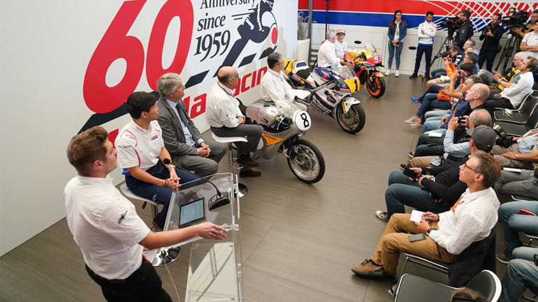«Στα 60 αυτά χρόνια η Honda έθετε όλο και περισσότερους στόχους για να γίνει ο πιο επιτυχημένος κατασκευαστής μοτοσυκλετών στους αγώνες Grand Prix», είπε ο Ezpeleta. «Νιώθουμε ιδιαίτερα υπερήφανοι που αποτελούμε κομμάτι της ιστορίας τους αλλά και για το ότι εκείνοι αποτελούν αναπόσπαστο κομμάτι της δικής μας». Η FIM ήταν αυτή που ίδρυσε τα Παγκόσμια Πρωταθλήματα το 1949, οπότε τόσο η Παγκόσμια Ομοσπονδία όσο και η Honda ήταν οι ακρογωνιαίοι λίθοι του αθλήματος. «Ως ο μεγαλύτερος κατασκευαστής μοτοσυκλετών στον κόσμο η Honda νιώθει την ευθύνη να έχει ισχυρή παρουσία στους αγώνες όπως απέδειξε τις τελευταίες έξι δεκαετίες που κατέκτησε πολλούς τίτλους σε όλες τις κατηγορίες σ’ αυτό το διάστημα», δήλωσε ο Viegas. «Ωστόσο, σήμερα η Honda δίνει τη μεγαλύτερη μάχη της για να αποδείξει ότι τα προϊόντα της είναι τα πιο καινοτόμα και τα καλύτερα δοκιμασμένα μέχρι να φτάσουν στα χέρια των πελατών της».