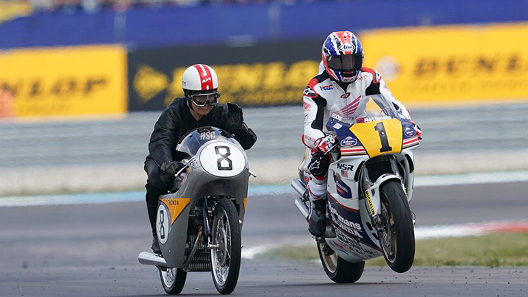 Πριν από την εκκίνηση του Ολλανδικού GP την Κυριακή, οι Takahashi και Doohan έκαναν από έναν συμβολικό γύρο στην πίστα, με μία RC142 του ’59 o πρώτος και με μία NSR500 του ’89 ο δεύτερος.
