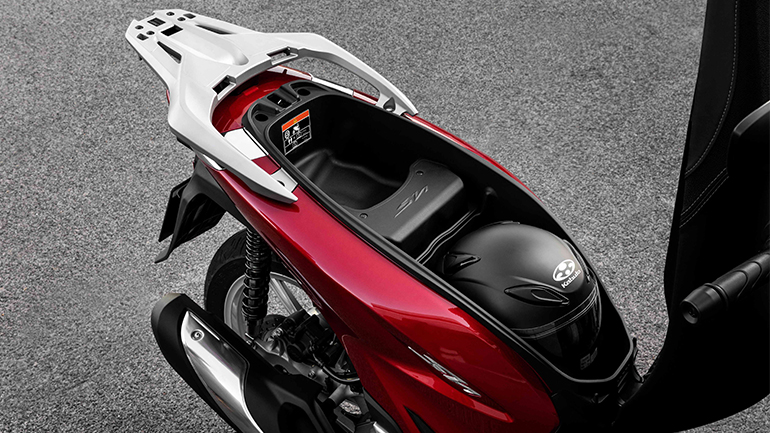 Έτσι βρέθηκε χώρος για 10 παραπάνω αποθηκευτικά λίτρα, όπως μπορείτε να δείτε και στη σχετική φωτογραφία, ενώ εκεί υπάρχει και υποδοχή φόρτισης μικροσυσκευών τύπου USB. Το νέο πλαίσιο έδωσε διαφορετική έδραση στον κινητήρα και στα δυο νέα πίσω αμορτισέρ, αλλάζοντας τα γεωμετρικά χαρακτηριστικά του μοντέλου και αναβαθμίζοντας τόσο την οδική συμπεριφορά όσο και την άνεση των επιβαινόντων. Το μεταξόνιο αυξήθηκε κατά 13mm, το ύψος της σέλας παρέμεινε στα 799mm και το συνολικό βάρος φτάνει τα 134 κιλά.