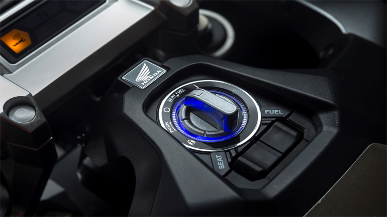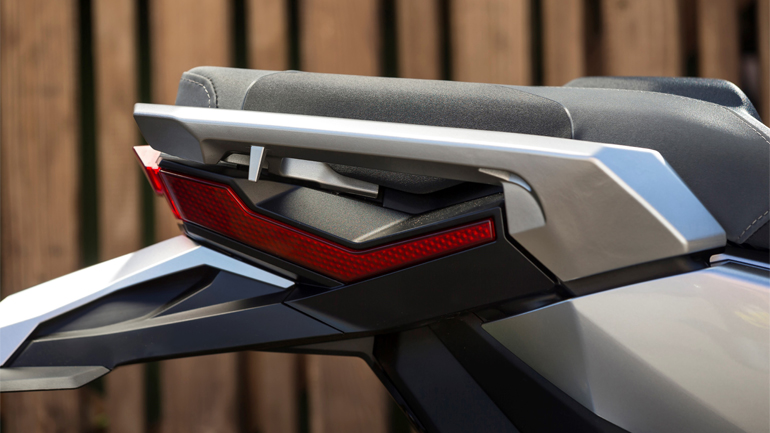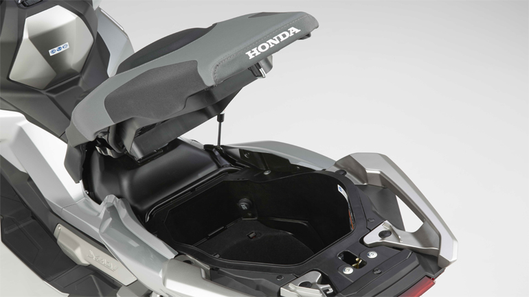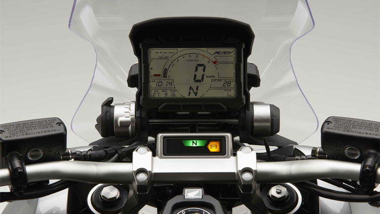 Συνεχίζοντας με τα προσόντα του X-ADV, ανακαλύπτουμε έναν σκληροτράχηλο χαρακτήρα που δηλώνει έτοιμος για όλα. Στα μακρινά ταξίδια η νέα ζελατίνα είναι αυτή που κάνει τη διαφορά, όντας πολύ αποτελεσματική σε κάθε περίπτωση (ύψος αναβάτη 1.78). Ρυθμίζεται χωρίς χρήση εργαλείων σε πέντε θέσεις, με συνολική υψομετρική διαφορά που αγίζει τα 14 εκατοστά, καλύπτοντας αεροδυναμικά έτσι όπως πρέπει και χωρίς να δημιουργεί ανεπιθύμητους στροβιλισμούς γύρω από το κράνος του οδηγού. Το “έξυπνο” κλειδί (Smart Key) έχει διπλό ρόλο, με λειτουργία on/off και “εντοπισμού” (αναβοσβήνει τα φλας για να βρείτε το X–ADV από απόσταση). Μεταφέρεται στην τσέπη του οδηγού και όλα γίνονται μέσω ενός περιστροφικού διακόπτη μπροστά από την εντυπωσιακή οθόνη TFT με τις άπλετες ενδείξεις. Μικρή παραφωνία ο ξεχωριστός διακόπτης για το άνοιγμα σέλας και τάπας ρεζερβουάρ, που είναι αναπάντεχα μέτριας έως κακής ποιότητας, σε πλήρη αντίθεση με τα υπόλοιπα συστατικά του X-ADV. Oι διπλοί προβολείς (που χωρίζονται με πλέγμα), τα φλας και το πίσω φανάρι με το διπλό κρύσταλλο είναι όλα τεχνολογίας LED, ενώ η ύπαρξη χειρόφρενου και διπλού σταντ είναι στοιχεία που θα εκτιμηθούν από όλους. Το μεγάλο “μειονέκτημα” της σειράς Integra, δλδ ο χώρος κάτω από τη σέλα, έχει ευτυχώς εξαλειφθεί, ενώ είναι φωτιζόμενος και με πρίζα 12V. Κάτι που χρηστικά μας έλειψε είναι η πλήρης απουσία μικρών αποθηκευτικών χώρων κάτω από το τιμόνι, τα λεγόμενα “ντουλαπάκια”, αλλά είπαμε, έχουμε να κάνουμε με SUV και όχι με scooter. Eυτυχώς που για να βάλουμε βενζίνη δεν απαιτείται ξεκαβάλημα από τη σέλα, αφού η τάπα είναι έξω από αυτή στο μπροστινό της μέρος.