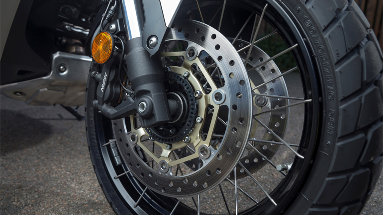 Το X-ADV διαθέτει κορυφαία περιφερειακά που θυμίζουν μοτοσυκλέτα προδιαγραφών, όπως για παράδειγμα σε ανάρτηση και φρένα. Η πρώτη είναι ρυθμιζόμενη και απαρτίζεται από ανεστραμένο πιρούνι 41mm και μονό αμορτισέρ με μοχλικό (pro-Link), ενώ η δεύτερη από τρεις ευμεγέθεις δίσκους (310mm μπροστά με ακτινικές τετραπίστονες δαγκάνες) και στάνταρ δικάναλο ABS τελευταίας γενιάς. Οι περίτεχνες αλουμινένιες ζάντες διαθέτουν ατσάλινες ακτίνες με τοποθέτηση που να επιτρέπει τη χρήση ελαστικών “tubeless”, χωρίς σαμπρέλα δηλαδή, ενώ το ατσάλινο τύπου “διαμάντι” πλαίσιο είναι σωστά μελετημένο προκειμένου να συνδυάζει ακαμψία με ελεγχόμενη ελαστικότητα. Μην ξεχνάμε ότι το X-ADV απευθύνεται και σε αναβάτες με μικρή δίτροχη εμπειρία, ένα τελείως άκαμπτο πλαίσιο σίγουρα δεν είναι κάτι που θα τους βοηθήσει, τόσο στην καθημερινότητά τους όσο και στις χωμάτινες διαδρομές τους. Ο δικύλινδρος σε σειρά κινητήρας των 745 κ.εκ. και 55 ίππων είναι ο ίδιος που χρησιμοποιείται στα μοντέλα Integra/NC750X/NC750S και διακρίνεται από τη φιλική λειτουργία και την τεράστια οικονομία του. Κάναμε περισσότερα από 600 χιλιόμετρα την εβδομάδα που είχαμε το X-ADV στη διάθεσή μας και ενδείξεις άνω των 5 λίτρων ανά 100 χλμ είδαμε μόνο στην εθνική και με τέρμα γκάζι. Μια μέση κατανάλωσ στα 4 με 4,5 λίτρα είναι απόλυτα εφικτή, ακόμα και για όσους έχουν νευρικό δεξί καρπό. Η ροπή είναι απόλυτα ικανοποιητική, καθώς και η απόκριση στο γκάζι σε ταχύτητες έως 120 χλμ/ώρα, από εκεί και πέρα επέρχεται μια λειτουργία με έμφαση στην οικονομία, χωρίς αυτό να σημαίνει πως δεν μπορεί να κινείται για ώρες πολλές με δύο άτομα και μουαγιέν άνω των 140 χλμ/ώρα.