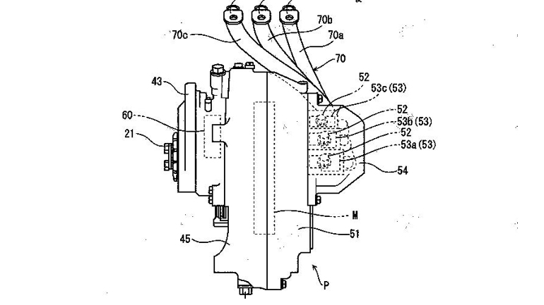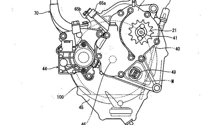 Ενδιαφέρον έχει ο πολύ συμπαγής και στενός ηλεκτροκινητήρας που φαίνεται στα σχέδια, καθώς βλέποντας το γρανάζι της μετάδοσης μπορεί κανείς να καταλάβει το μικρό του μέγεθος. Αυτό βέβαια μας πηγαίνει και σε άλλα μονοπάτια σκέψης, τα οποία θα μπορούσαν να σχετίζονται με την πατέντα μιας υβριδικής μοτοσυκλέτας και με τον ηλεκτροκινητήρα να λειτουργεί στις χαμηλές ταχύτητες.