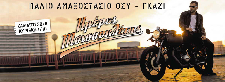 Ένα Σαββατοκύριακο αφιερωμένο στη μοτοσυκλέτα και σε όλους όσους την αγαπούν. Περισσότερες από τριακόσιες από τις πιο όμορφες και σημαντικές μοτοσυκλέτες όλων των εποχών θα μας περιμένουν να τις θαυμάσουμε το διήμερο 30/9 και 1/10 στο χώρο του παλιού αμαξοστάσιου στην Πειραιώς, ακριβώς απέναντι από την Τεχνόπολη και με είσοδο από τον πεζόδρομο της Ερμού.