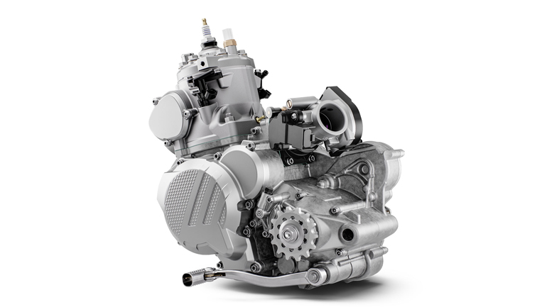 Όλοι οι κύλινδροι των δίχρονων κινητήρων είναι αναβαθμισμένοι στις θυρίδες εξαγωγής για καλύτερο χρονισμό, ενώ παράλληλα ο επανασχεδιασμένος έλεγχος της βαλβίδας εξαγωγής και ο ρυθμιστής προσφέρουν ακόμα ακριβέστερο σετάρισμα και αποτελεσματικότητα. Επανασχεδιασμένο είναι και το σύστημα του ρελαντί, με τη βίδα bypass να επιτρέπει περισσότερη ροή αέρα όταν ο κινητήρας είναι κρύος. Επίσης οι χαρτογραφήσεις είναι νέες και σε συνδυασμό με το νέο αισθητήρα αέρα προσφέρουν αποτελεσματικότερη λειτουργία. Στους τετράχρονους κινητήρες ο κύλινδρος και το πιστόνι είναι καινούργια για τα 250 και 350 EXC-F, με νέα “motocross” συμπίεση και νέες φλάντζες. Στο 350 EXC-F η κεφαλή έχει επανασχεδαστεί και είναι πιο ελαφριά κατά 200g, με νέες θυρίδες, προσφέροντας καλύτερη ροπή. Επίσης, στο ίδιο μοντέλο, το σύστημα ψύξης είναι επανασχεδιασμένο με νέα κολάρα, ενώ σε όλους του κινητήρες η τροφοδοσία λαδιού είναι ενισχυμένη όπως και η ένωση της εξάτμισης στην κεφαλή για καλύτερη εφαρμογή.
