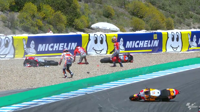Απίστευτα πράγματα συνέβησαν σήμερα στη Χερέθ, δικαιώνοντας το θεσμό στο θέμα «θέαμα». Ο αγώνας τα είχε όλα, προσπεράσεις, «σωσίματα» και πτώσεις, πτώσεις άνευ προηγουμένου!
