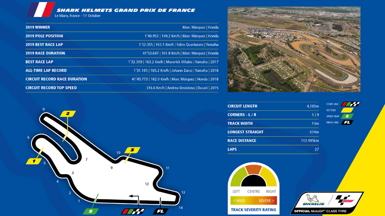 Αυτό το σαββατοκύριακο το MotoGP πάει στη Γαλλία και συγκεκριμένα στο Le Mans για το Grand Prix de France, καθώς και για το Παγκόσμιο Κύπελλο FIM Enel MotoE που θα ολοκληρωθεί με δύο αγώνες.