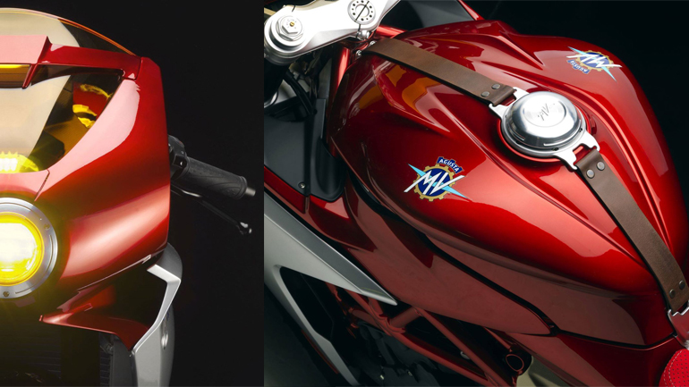 Κίτρινο χρώμα σε αλεξίνεμο και μονό προβολέα, τα οποία κρύβουν σύγρονη οθόνη οργάνων TFT και τεχνολογία led αντίστοιχα. Τάπα ρεζερβουάρ με δερμάτινη ζώνη και ασύμμετρη «αγωνιστική» εξάτμιση α λα 70s. Στην ουρά συναντάμε και πάλι Led, ενώ το εικονιζόμενο μονόσελο μπορεί να δώσει τη θέση του σε ένα σελάκι για τον –περιττό ίσως- συνεπιβάτη. Όσο κοιτά κανείς το Superveloce εκτιμά το μινιμαλισμό του παρελθόντος, χωρίς ωστόσο να έχει την τεχνολογική «ανεπάρκεια» που τον συνόδευε.