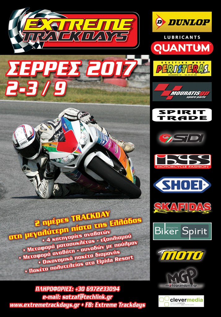 Τη δυνατότητα να δοκιμάσουν τις μοτοσυκλέτες τους στην πίστα των Σερρών θα έχουν οι αναβάτες κάθε επιπέδου το Σαββατοκύριακο 2-3 Σεπτεμβρίου.