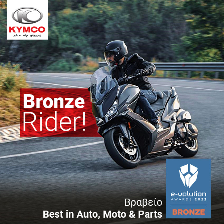 Το 2022 βρήκε την Kymco να παραλαμβάνει ένα ακόμα βραβείο αυτήν τη φορά στα e-volution Awards 2022. Τα συγκεκριμένα βραβεία έχουν να κάνουμε με το ηλεκτρονικό εμπόριο και η ιστοσελίδα www.kymco.gr έλαβε το Bronze Award στην κατηγορία Best in Auto, Moto & Parts.