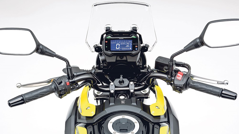 Το όργανο πολλαπλών λειτουργιών LCD περιλαμβάνει τις εξής λειτουργίες: – Ταχύμετρο, στροφόμετρο, χιλιομετρητή, δύο μερικούς χιλιομετρητές, επιλεγμένη σχέση στο κιβώτιο ταχυτήτων, αυτονομία, μέση κατανάλωση καυσίμου, δείκτη καυσίμου, ένδειξη Service, ρολόι, αλλά και RPM indicator! Διαθέτει επίσης ενδείξεις με LED φωτάκια για τα φλας, τη μεγάλη σκάλα φώτων, τη νεκρά, Ο εξοπλισμός είναι κάτι παραπάνω από πλήρης!τη διάγνωση βλάβης, το ABS και τις θερμοκρασίες ψυκτικού και λαδιού. Ο ανεμοθώρακας είναι σχεδιασμένος σε τούνελ αεροδυναμικών δοκιμών, προσφέροντας πλήρη προστασία ακόμα και στις υψηλές ταχύτητες. Οι βάσεις για βαλίτσες είναι προεγκατεστημένες και έτοιμες να φιλοξενήσουν τις πλευρικές βαλίτσες, που ανήκουν στον προαιρετικό εξοπλισμό. Η μεγάλη σχάρα αλουμινίου διαθέτει γάντζους για την εύκολη πρόσδεση επιπλέον αποσκευών, καθώς και τις αναμονές για την τοποθέτηση της πίσω κεντρικής βαλίτσας.
