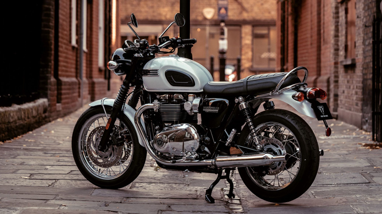 Μια ακόμα έκδοση επετειακού χαρακτήρα από την αγγλική φίρμα, που όπως και το Τ120 Ace (δείτε εδώ) θέλει να μας ταξιδέψει στο χρόνο και να μας μεταφέρει το κλίμα μιας άλλης εποχής, ρομαντικής και δοξασμένης ταυτόχρονα. Βασισμένο και αυτό στην έκδοση Τ120 Black, ξεχωρίζει από τον αποκλειστικό του χρωματισμό “Snowdonia White” και μια σειρά ειδικών χαρακτηριστικών με έμφαση στη λεπτομέρεια. Όπως για παράδειγμα το ανάγλυφο αλουμινένιο λογότυπο “Union Flag” στο ρεζερβουάρ, το λευκό σιρίτι στη σέλα και οι επιχρωμιώσεις σε σήματα, καπάκια κινητήρα, προστατευτικό αλυσίδας και στις πανέμορφες, τύπου “peashooter”, εξατμίσεις .