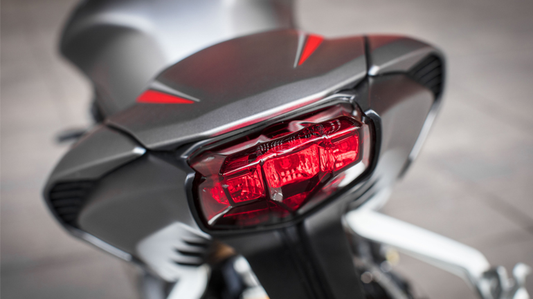 Νέος στρόφαλος και έμβολα, Nikasil χιτώνια, αυξημένη διάμετρος και διαδρομή, το αποτέλεσμα είναι μια σημαντική αναβάθμιση στις επιδόσεις, ιδιαίτερα στις χαμηλές και μεσαίες στροφές. Μια ελαφρύτερη, ελεύθερης ροής εξάτμιση και ένα αναθεωρημένο φιλτροκούτι προσφέρουν σημαντικά βελτιωμένες επιδόσεις (πόσο παραπάνω πια;) και παράλληλα ένα μεθυστικό και ιδιαίτερα διακριτό ήχο. Οι 123 ίπποι του τρικύλινδρου σε σειρά των 765cc βγαίνουν στο δρόμο ανάλογα με την επιθυμία του αναβάτη, που έχει να επιλέξει ανάμεσα σε πέντε διαφορετικά οδηγικά προγράμματα: – Road για χαλαρή οδήγηση, Rain για γλιστερές συνθήκες, Sport για να ανάβουν τα αίματα, Track για την πίστα, αλλά και έναΠέντε τα οδηγικά προγράμματα για κάθε συνθήκη! προγραμματιζόμενο από τον ίδιο τον αναβάτη για να ρυθμίζει κάθε φορά και διαφορετικά!. Επιπλέον, ένας νέος υποβοηθούμενος συμπλέκτης προσφέρει ελαφρύτερη σύμπλεξη και μειωμένη προσπάθεια από τον οδηγό, για ακόμα καλύτερο έλεγχο και ακρίβεια. Σημαντική αναβάθμιση και στα όργανα, όπου ένας ολοκαίνουριος έγχρωμος πίνακας TFT 5″, με ρυθμιζόμενη κλίση ώστε να μπορεί ο αναβάτης να έχει ευανάγνωστη πρόσβαση από κάθε γωνία θέασης, δίνει την αίσθηση (αλλά και την ουσία) αγωνιστικής κατασκευής.