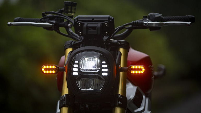Ο μονός στρογγυλός προβολέας LED έχει σχήμα ανεστραμμένου «U», πλαισιώνεται από LED Strips και στις δύο πλευρές του, ενώ λίγο πιο πάνω υπάρχει μια νέα έγχρωμη TFT oθόνη που προσφέρει πολλές ενδείξεις, αυτόματη εναλλαγή φωτισμού (day/night), αλλά και συνδεσιμότητα με smartphone, έτσι ώστε ο αναβάτης να τη χρησιμοποιεί και σαν οθόνη GPS.