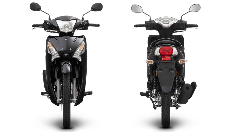 Το πιρούνι είναι τηλεσκοπικό συμβατικό, η πίσω ανάρτηση με το ψαλίδι από σωλήνα ορθογωνικής διατομής (βαμμένο ασημί) έχει δύο αμορτισέρ και οι τροχοί είναι 17 ιντσών με λάστιχα διαστάσεων 70/90 μπροστά και 80/90 πίσω. Τα φρένα διαθέτουν συνδυασμένη λειτουργία και απαρτίζονται από δισκόφρενο μπροστά και ..ταμπούρο πίσω (δυστυχώς). Ο κινητήρας είναι καινούργιος για την Ευρώπη, ίδιος με του μαλαισιανού μοντέλου Lagenda 115, με χαρακτηριστικό ότι δεν έχει ψύκτρες στην κεφαλή (α λα Honda). Είναι τετράχρονος, μονοκύλινδρος, αερόψυκτος, χωρητικότητας 114cc και διαθέτει 1 ΕΕΚ και δύο βαλβίδες. Η τροφοδοσία γίνεται με ψεκασμό και η απόδοσή του φτάνει τους 9 ίππους στις 7.000 rpm και η ροπή του τα 0,94 Kgm στις 5.500 rpm. Το κιβώτιο ταχυτήτων είναι ημιαυτόματο 4 σχέσεων και για την εκκίνησή του υπάρχει και μίζα και μανιβέλα.