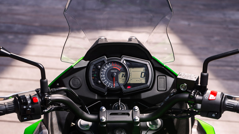 Ευτυχώς την κατάσταση διευκολύνει ο σχεδιασμός του ρεζερβουάρ, ενώ ευχάριστα είναι τα πράγματα για τον/την συνεπιβάτη, που έχει στη διάθεσή του μια ευρύχωρη σέλα και σωστά σχεδιασμένα μαρσπιέ και χειρολαβές. Ο συντηρητικής σχεδίασης (για τα σημερινά δεδομένα πάντα), πλην όμως σχεδόν υπερπλήρης, πίνακας οργάνων περιλαμβάνει στροφόμετρο, ταχύμετρο, ενδείξεις θερμοκρασίας ψυκτικού υγρού, στάθμης βενζίνης και σχέσης κιβωτίου, ολικό και δύο μερικούς χιλιομετροδείκτες, ρολόι, ενδεικτικές λυχνίες νεκράς, φλας, μεγάλης σκάλας προβολέα, χαμηλής πίεσης λαδιού και υπερθέρμανσης ψυκτικού υγρού (>115° C). Επίσης υπάρχουν ενδείξεις φόρτισης μπαταρίας (ενεργοποιείται στην περίπτωση υπο-φόρτισης ή/και υπερ-φόρτισης), ελέγχου συστήματος διαχείρησης κινητήρα, ελέγχου συστήματος ABS, χαμηλής στάθμης βενζίνης, καθώς επίσης και δείκτες κατανάλωσης, αυτονομίας και οικονομικής οδήγησης.