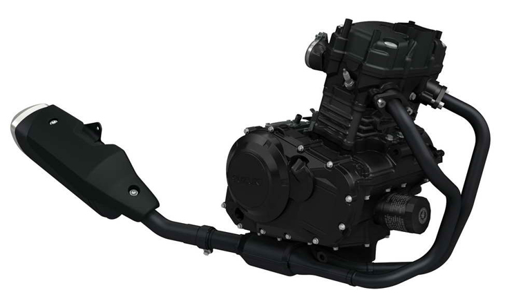 Ο δικύλινδρος σε σειρά κινητήρας με τον 1 ΕΕΚ προέρχεται από το μοντέλο δρόμου Inazuma, είναι προδιαγραφών Euro4, με νέες βαλβίδες εισαγωγής και βελτιωμένη ροή αέρα στον θάλαμο καύσης. Διαθέτει υποτετράγωνες διαστάσεις για μεστή απόδοση σε όλο το φάσμα των στροφών και στην πορεία του στον χρόνο έχει αποδείξει το αλεξίσφαιρο του χαρακτήρα του. Στην προκειμένη περίπτωση έχει ρυθμιστεί έτσι ώστε να βγάζει στην επιφάνεια τους 25 ίππους του με ακόμα πιο γραμμικό τρόπο (πάντα σε σχέση με το Inazuma). Απόλυτα ελαστική η λειτουργία του, από το χαμηλότερο εύρος των στροφών του μέχρι το κόκκινο, ανεβάζει χωρίς κομπιάσματα, ξεσπάσματα και κραδασμούς, ενώ και οι μηχανικοί θόρυβοι λάμπουν διά της απουσίας τους.