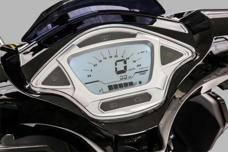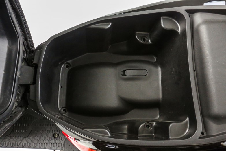 Κάτω από τη μεγάλη και άνετη σέλα που κλειδώνει υπάρχει αποθηκευτικός χώρος, στο εσωτερικό της ποδιάς υπάρχουν δύο χρηστικοί, ανοιχτοί αποθηκευτικοί χώροι και οι δυο σχάρες – στην ποδιά και πίσω – είναι στον στάνταρ εξοπλισμό.