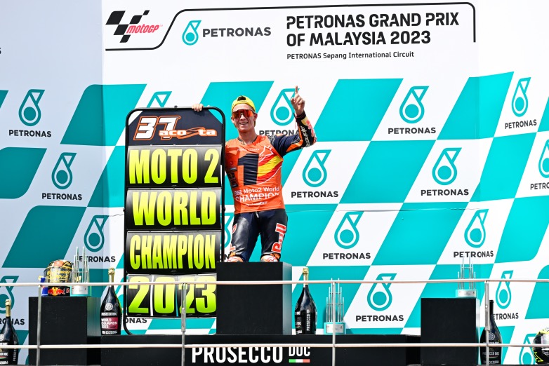 Ο αναβάτης της Red Bull KTM Ajo κατακτά το Πρωτάθλημα στην Sepang μετά από άλλη μια εκπληκτική σεζόν. Ο Pedro Acosta είναι ο Παγκόσμιος Πρωταθλητής FIM Moto2™ 2023! Ο αναβάτης της Red Bull KTM Ajo πήρε το δεύτερο Πρωτάθλημα του με στυλ με ένα βάθρο στο PETRONAS Grand Prix της Μαλαισίας, και έγινε ο νεότερος Πρωταθλητής της μεσαίας κατηγορίας μετά από τον Dani Pedrosa το 2004 και ο νεότερος που υπήρξε ποτέ στη Moto2™ – λίγο πιο νωρίς από τον Marc Marquez. Ο Acosta έχει ανέβει σε 14 βάθρα φέτος, συμπεριλαμβανομένων 7 νικών, και ολοκληρώνει την κατάκτηση του πρωταθλήματος με δύο επιπλέον Αγώνες να απομένουν.