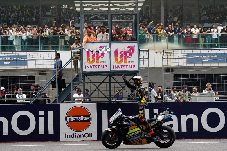 Καθώς ένας Αγώνας του MotoGP™ που έγραφε ιστορία ολοκληρώθηκε στην Bharat (το δεύτερο επίσημο όνομα της Ινδία;), ο Αξιότιμος Αρχι-Πρωθυπουργός της Uttar Pradesh, Yogi Adityanath, κυμάτισε επίσης την καρό σημαία.