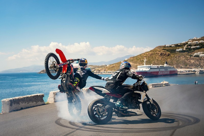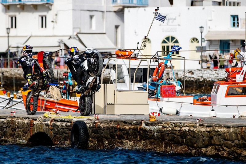 Δες τον Robbie Maddison να οδηγεί τη μοτοσυκλέτα του μέσα στη θάλασσα με φόντο τη Μικρή Βενετία αλλά και τη “φιλική” κόντρα του με τον Aaron Colton που έφερε τα πάνω-κάτω στη Μύκονο!
