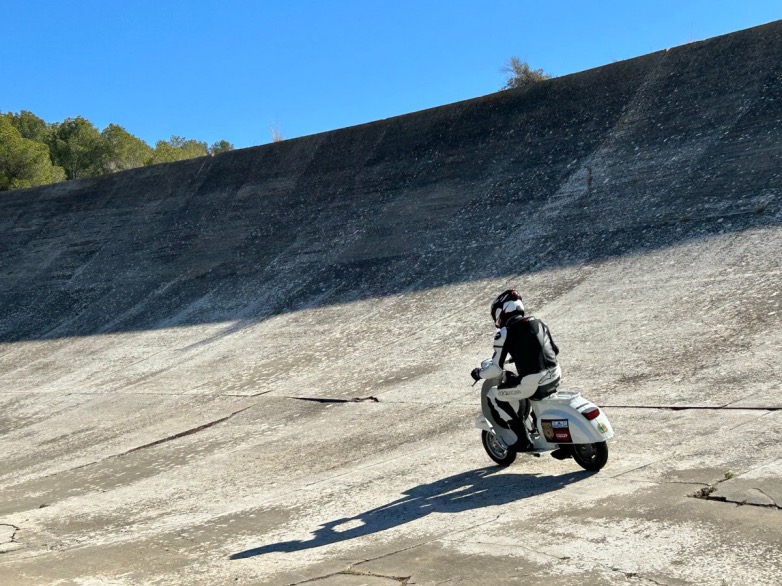 «Είδα την πίστα Terramar για πρώτη φορά το 2018 – θυμάται ο Boni – και με γοήτευσε. Νιώθω το βάρος του χρόνου και σε ορισμένα σημεία, οι πλάκες από σκυρόδεμα της επιφάνειας είναι πολύ ανώμαλες, αλλά δεδομένης της μειωμένης ταχύτητας, σκέφτηκα παίρνοντας το ρίσκο και αντιμετωπίζοντας το μακρύ ταξίδι, αλλά πρέπει να πω ότι ένα σημαντικό μέρος της επιλογής έγινε από τους – στρογγυλούς – αριθμούς: ένα σκούτερ 45 ετών, μια πίστα που μόλις γιόρτασε έναν αιώνα ζωής, 55 χρόνια από τότε. Την παρουσίαση της πρώτης Vespa 50 Special, τα 100 χρόνια του εργοστασίου της Pontedera, όπου κατασκευάζεται πάντα η Vespa, και τέλος τα 65 μου χρόνια».