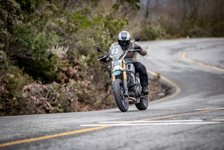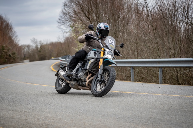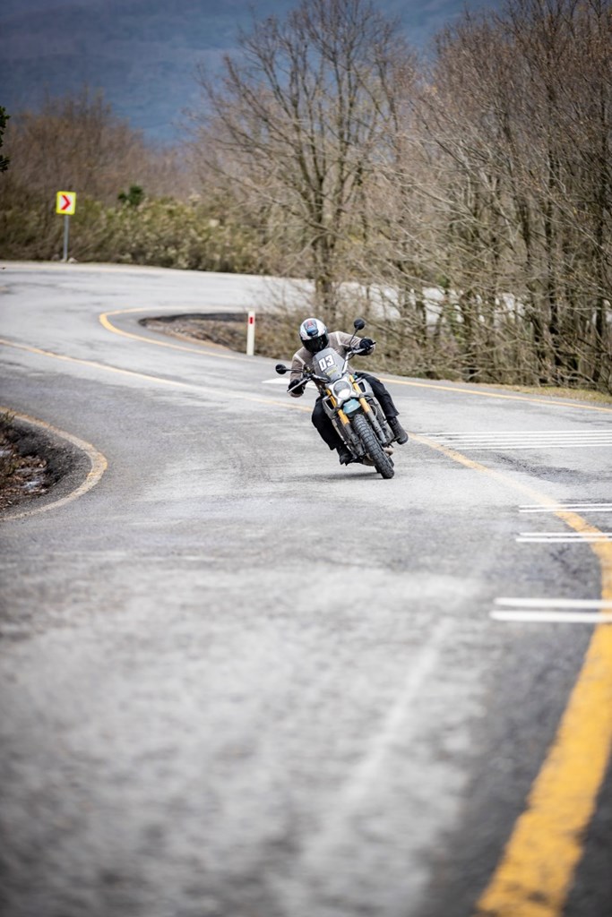 Με το γνωστό δικύλινδρο κινητήρα των 693 κ.εκ., να αποδίδει 74 ίππους στις 8,500 σ.α.λ. και εξαιρετική ροπή 68 Nm στις 7,000 σ.α.λ. Η θέση οδήγησης είναι πιο όρθια, με τιμόνι πιο κοντά στον οδηγό, 30 χιλ. πιο ψηλά και 15 χιλ. πιο πίσω συγκριτικά με την Heritage. Η μεγαλύτερη απόσταση από το έδαφος, το πιο ψηλά τοποθετημένο φτερό στον εμπρός τροχό, οι ρυθμιζόμενες αναρτήσεις ΚΥΒ και τα Ελαστικά Pirelli Scorpion Rally Str σε ακτινωτούς τροχούς 18” εμπρός και 17” πίσω, βοηθούν την εκτός δρόμου οδήγηση. Στην περίπτωσή μας οδηγήσαμε σε ασφάλτινη διαδρομή στην περιοχή έξω από την Πόλη, που μαζεύονται τα Σαββατοκύριακα οι περισσότεροι μοτοσυκλετιστές της πόλης. Η μικρή βόλτα μας άφησε την αίσθηση ότι πρόκειται για μια ευχάριστη μοτοσυκλέτα, με μόνο πρόβλημα την απότομη αύξηση της απόδοσης μετά τις 7,000 σ.α.λ., όταν έρχεται όλη η ροπή να εκτινάξει μπροστά τη μοτοσυκλέτα. Κάτι που μπορεί να είναι και ένα ευχάριστο παιχνίδι, αλλά θα προτιμούσαμε μια πιο ομαλή απόκριση στο γκάζι, κάτι που δουλεύουν οι τεχνικοί της εταιρίας και θα λυθεί μάλλον μέσω νέας χαρτογράφησης.