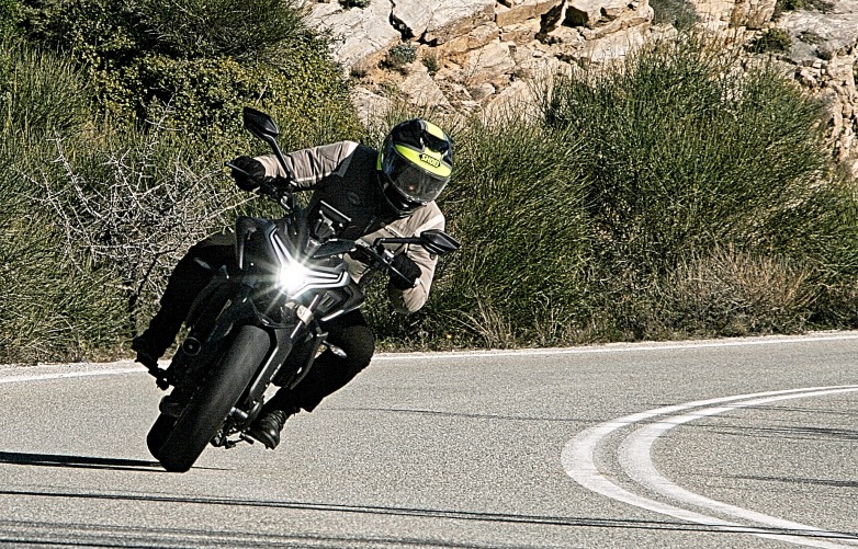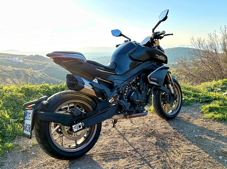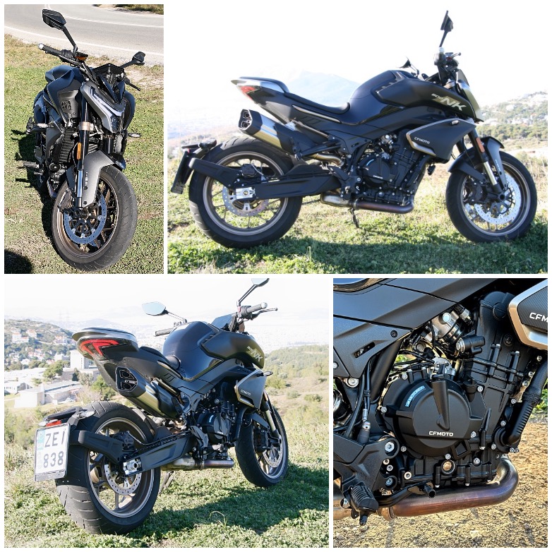 Από κει και πέρα ο δικύλινδρος υγρόψυκτος κινητήρας των 799cc διαθέτει 81Nm ροπής στις 8,000σ.α.λ., με crossplane διάταξη, που δίνει αντίστοιχα χαρακτηριστικό ήχο, αλλά και λειτουργία ανάλογη των V-2 μοτέρ. Ο συμπλέκτης ολίσθησης φροντίζει για ασφαλή και απροβλημάτιστα κατεβάσματα ταχυτήτων. Οι οδηγικοί χάρτες είναι τρεις: Sport, Street και Rain και η πιο άμεση απόκριση του Σπορ χάρτη αφήνει μεγαλύτερα περιθώρια παιχνιδιού με το γκάζι, καθώς ΔΕΝ υπάρχει traction control και μπορείς να εκμεταλλευτείς τους 94 ίππους για να κινηθείς, εκτός από γρήγορα και πολύ ευχάριστα. Το μόνο που μπορούμε να πούμε εδώ είναι η όχι τέλεια λειτουργία των ηλεκτρονικών, ως προς την απόκριση του γκαζιού, που σημαίνει ότι χρειάζονται από την CFMOTO κάποιες αναβαθμίσεις σε αυτόν τον τομέα. Το Quickshifter – που διαθέτει η έκδοση που είχαμε στα χέρια μας – επίσης δεν έχει αυτήν την τέλεια αίσθηση ακρίβειας που έχουν οι ακριβές ευρωπαϊκές supersport.