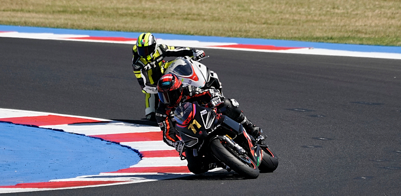 Με τα φρέσκα ολοκαίνουργια λάστιχα έτοιμα στη σωστή θερμοκρασία από τις ηλεκτρικές κουβέρτες και με τις σωστές πιέσεις ελεγμένες από τους τεχνικούς της Ιταλικής εταιρίας, και με την πίστα σε τέλεια κατάσταση, στρωμένη με τη γόμα των αγωνιζομένων από τις προηγούμενες τρεις ημέρες, οι συνθήκες ήταν ιδανικές στο να δοκιμάσουμε και τα σλικ των SuperBike στην “μεγάλη” των 1100 κ.εκ.και τα χαρακτά Supercorsa στη μεσαία μοτοσυκλέτα των 660 κ.εκ.