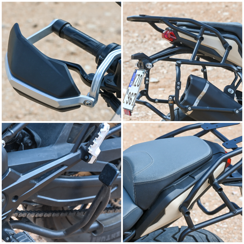 H σύγχρονη εμφάνιση στην περίπτωσή μας ενισχύεται από τα πρόσθετα σίδερα ασφαλείας μπροστά και την έτοιμη για να μεταφέρει τις βαλίτσες μας, δομή πίσω. Η διπλή απόληξη του σιγαστήρα της εξάτμισης υπογραμμίζει την ύπαρξη του δικύλινδρου κινητήρα, ενώ ο γενικότερος εξοπλισμός μπορεί να χαρακτηριστεί πλήρης για τη μεσαία κατηγορία.