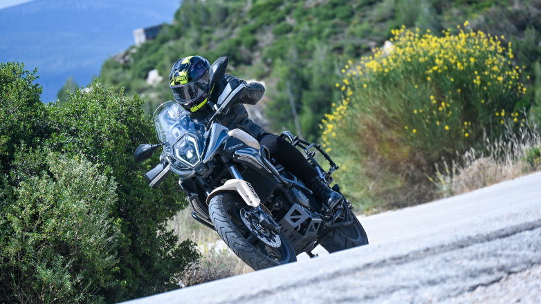 Εκτός δρόμου, η SRT550S δείχνει τον adventure χαρακτήρα της, χάρη στους τροχούς 19” εμπρός και 17” πίσω και τα καλά ελαστικά διπλής χρήσης Maxxis MaxxVenture. Το κιβώτιο είναι ακριβές, ο κινητήρας γεμάτος ροπή από χαμηλά, ενώ η κατανάλωση παραμένει λογική ακόμα και σε απαιτητικές συνθήκες. Το βάρος της, αν και στα 217 κιλά πλήρης υγρών (και με τα κάγκελα και τις σχάρες), είναι σωστά κατανεμημένο και δεν κουράζει. Εδώ να πούμε ότι ο εξοπλισμός με τις σχάρες, τα κάγκελα και το κεντρικό σταντ προσθέτει ουσία στον ταξιδιωτικό χαρακτήρα, καθιστώντας της έτοιμη για τις αποδράσεις μας.