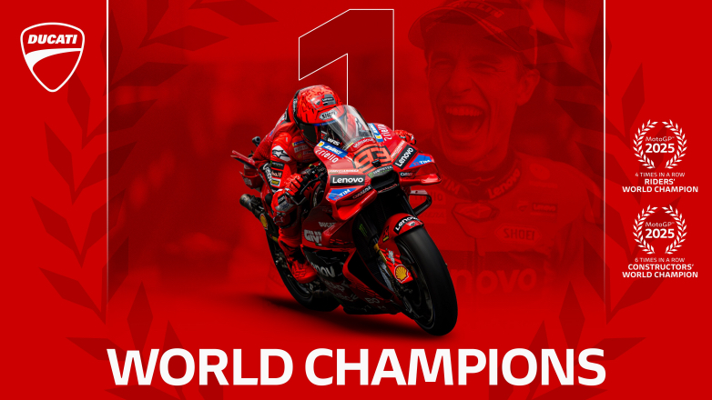 Το 2025 ήταν η χρονιά της απόλυτης συγκομιδής Τίτλων. Η Ducati κατέκτησε τον Τίτλο Αναβατών, τον Τίτλο Ομάδων και τον Τίτλο Κατασκευαστών, καθώς και τον Τίτλο Ανεξάρτητου Οδηγού, Ανεξάρτητης Ομάδας και τον Τίτλο Rookie of the Year. Ένα πλήρες «σκούπισμα» που οδήγησε στο τρίτο Triple Crown της ιστορίας της, μετά το 2007 και το 2022, επιβεβαιώνοντας ότι η επιτυχία της δεν είναι συγκυριακή αλλά δομική και επαναλαμβανόμενη.