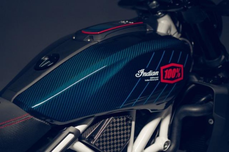 Κατασκευασμένη γύρω από την FTR R Carbon, η μοτοσυκλέτα διαθέτει ένα μοναδικό στο είδος του ντεπόζιτο από ανθρακονήματα Blue Candy, κάλυμμα προβολέα, κάλυμμα καθίσματος και μπροστινό φτερό, καθώς και ειδική λευκή επίστρωση πούδρας στο πλαίσιο που βοηθά στην ανάδειξή του. Η νέα εμφάνιση της Indian με τη συνεργασία της 100% εντοπίζεται στα λογότυπα σε κάθε πλευρά του ρεζερβουάρ, στο κάλυμμα του καθίσματος και το μικρό φέρινγκ στο εμπρός φωτιστικό σώμα. Περαιτέρω αλλαγές υπάρχουν με τα μαύρα εξαρτήματα ανάρτησης της Ohlins, χρυσούς ορθοστάτες και μαύρα τελικά εξάτμισης Akrapovic από τιτάνιο.