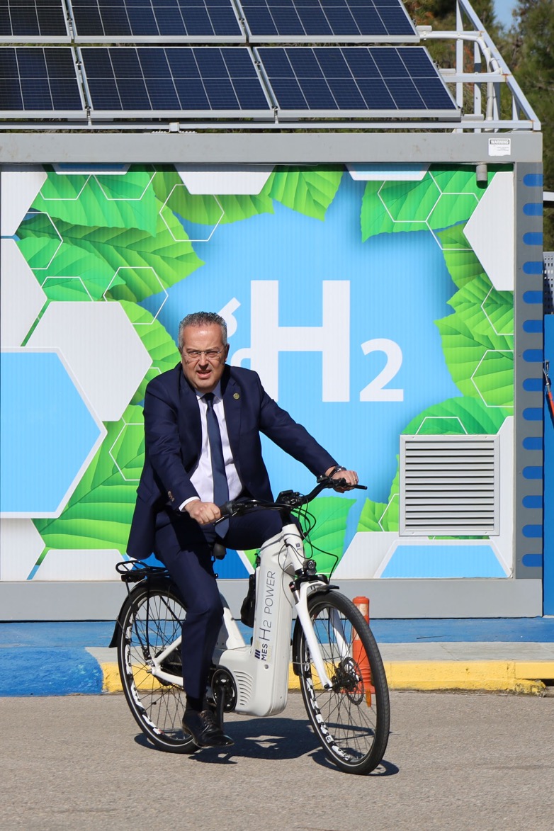 Είχε επίσης ο Δήμαρχος Παπάγου-Χολαργού την ευκαιρία να διαπιστώσει από πρώτο χέρι την ευκολία ανεφοδιασμού ενός οχήματος μέσω της ειδικής αντλίας που υπάρχει στον σταθμό. Βέβαια στη δοκιμή του ποδηλάτου που κινείται με υδρογόνο ο Δήμαρχος ξέχασε να φορέσει κράνος, κάτι που θα έπρεπε να προσέξει ο ίδιος και οι συνεργάτες του.