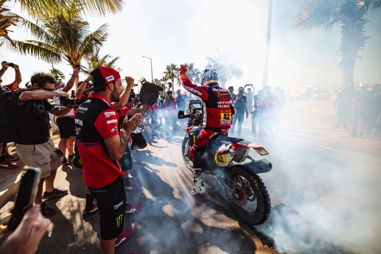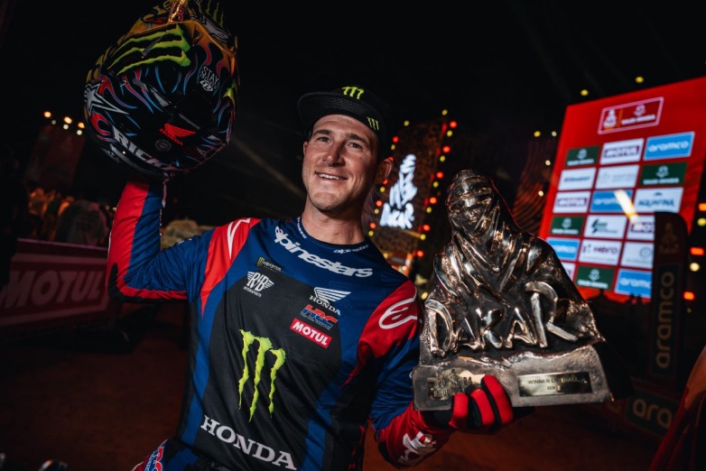 Η διαδρομή σχεδόν 8.000 χιλιομέτρων σε όλη τη Σαουδική Αραβία ολοκληρώθηκε με εντυπωσιακό τρόπο στην Ερυθρά Θάλασσα στο Yanbu, με τον Ricky Brabec της ομάδας Monster Energy Honda Team, να κατακτά με το νέο Honda CRF450 RALLY, την κορυφή του Dakar για δεύτερη φορά, γράφοντας ιστορία ως ο μοναδικός Αμερικανός που το έχει επιτύχει.