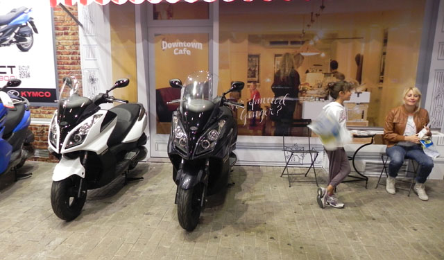 Σε ειδικά διαμορφωμένα περίπτερα και χώρους που θυμίζουν άλλες εποχές οι επισκέπτες μπορούν να περάσουν ευχάριστα είτε τους αρέσουν οι μηχανές είτε όχι. Αν και η εποχή της κρίσης επιβάλλει μετακινήσεις με δίτροχα και κυρίως Scooter, αρκετές εταιρείες λείπουν…  Σε κάθε περίπτωση, όμως, εταιρείες όπως η Yamaha, η Honda, η Kymco κ.ά. δίνουν βροντερό παρών με χώρους από όπου απλώς δεν θα θέλεις να φύγεις χωρίς να… ψωνίσεις.