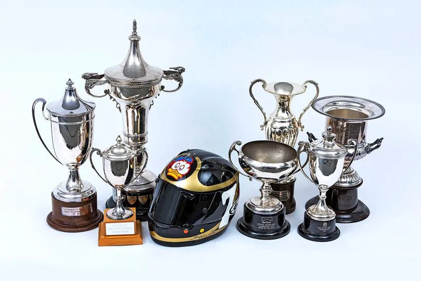 Αυτά περιλαμβάνουν ένα τρόπαιο που πήρε ο Sheene για την νίκη του στο τέταρτο Διεθνές Grand Prix στο Πέζαρο, τον Αύγουστο του 1975 – που εκτιμάται ότι θα φτάσει τα 450-900 ευρώ.