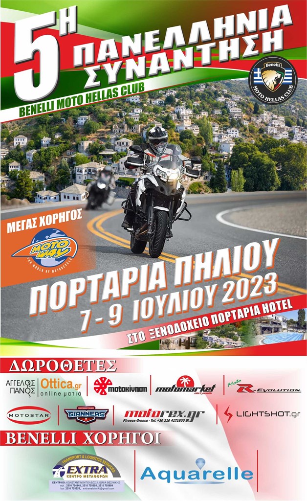 Φέτος για 5η συνεχόμενη χρονιά θα πραγματοποιηθεί η πανελλήνια συνάντηση της Λέσχης Benelli η οποία θα λάβει χώρα στο Πήλιο και πιο συγκεκριμένα στην Πορταριά Πηλίου στις 7, 8 και 9 Ιουλίου 2023.