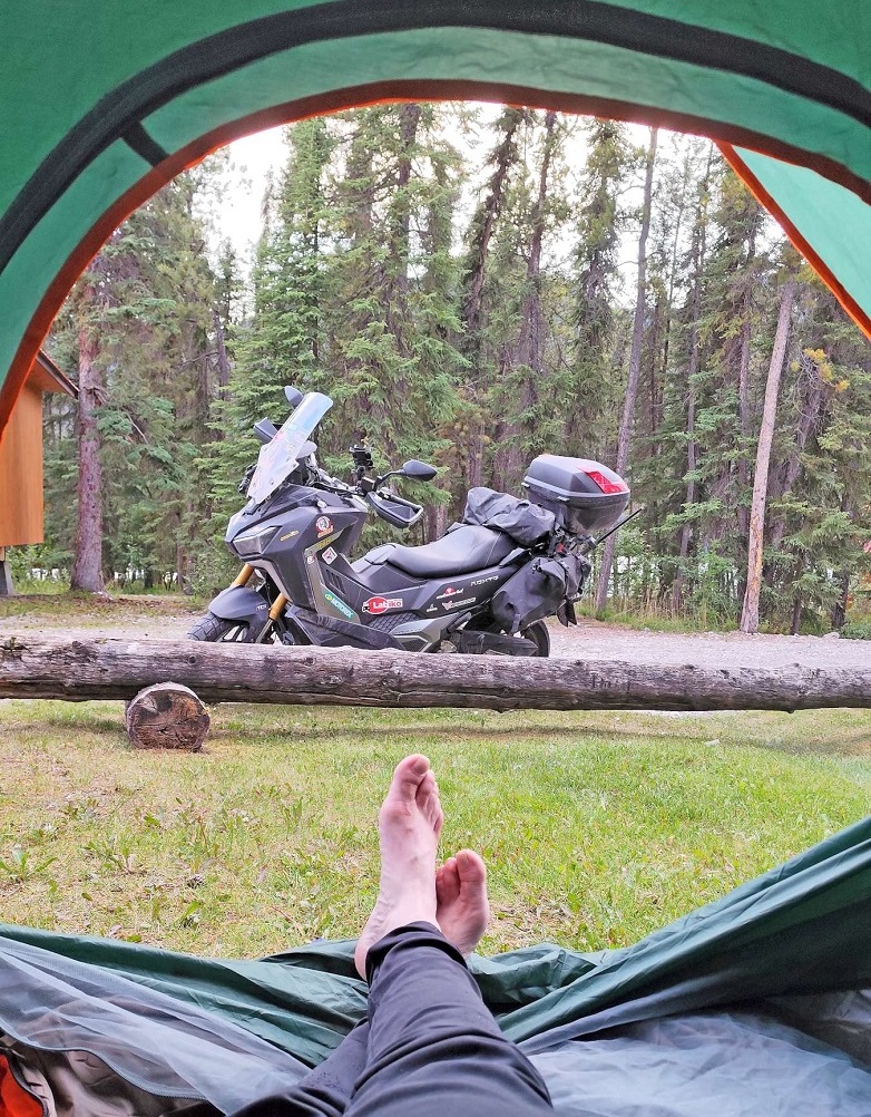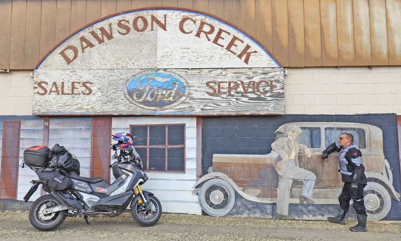 “Με αφετηρία την κωμόπολη Dawson Creek, ο οδικός άξονας Alaska Highway (μήκους 1.422 μιλίων ή 2.400 χλμ.) ανέλαβε να οδηγήσει τους τροχούς του SYM ADXTG 400 στην Αλάσκα των ιθαγενών Αλουίτ και Ινουίτ. Ως αφετηρία του Alaska Highway θεωρείται η πόλη Dawson Creek και το τέλος του η κωμόπολη Delta Junction της Αλάσκας…