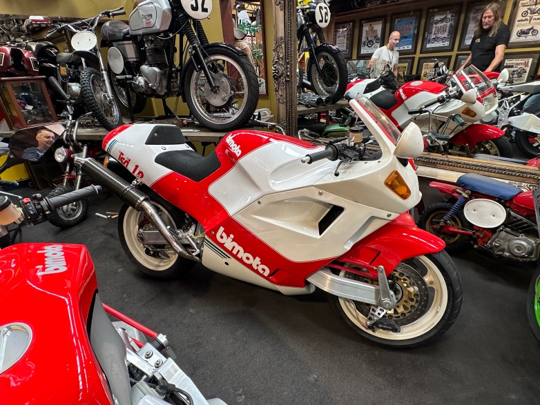 Το μάτι μου πήγε κατευθείαν σε μια Bimota YB4 που κρεμόταν στο ταβάνι του χώρου πίσω από το καφέ και μπαίνοντας στο χώρο του μουσείου ένα δέος με διαπέρασε αμέσως καθώς μπροστά μου βρισκόταν η μια σχεδόν πάνω στην άλλη μερικές από τις αγαπημένες μου μοτοσυκλέτες των τελευταίων δεκαετιών και ανάμεσά τους διέκρινα και μερικές πολύ σπάνιες και ιστορικές που ακόμη και το Μουσείο Barber στις ΗΠΑ θα ζήλευε.