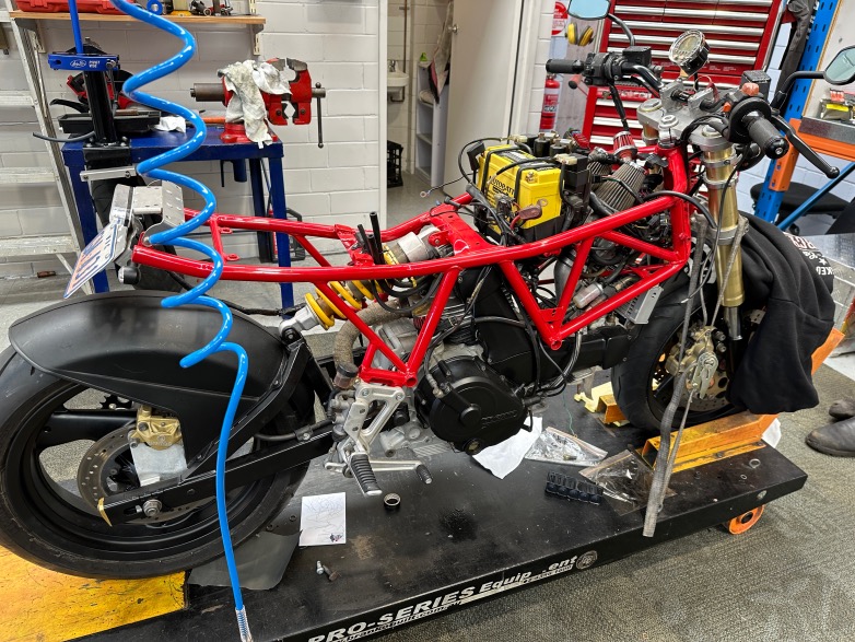 Δίπλα ακριβώς μια πόρτα στην οποία απαγορευόταν η πρόσβαση, άφηνε από το τζάμι της να δεις το Naked Racer Workshop, το εργαστήριο περισσότερο, παρά συνεργείο στο οποίο ανακατασκευάζονται μερικές ακόμη κλασικές μοτοσυκλέτες, για να πάρουν τη θέση αυτών – από τις 250 που βρίσκονται στον κύριο χώρο – που θα βρουν ένα νέο ιδιοκτήτη στην Αυστραλία ή σε όλον τον κόσμο.