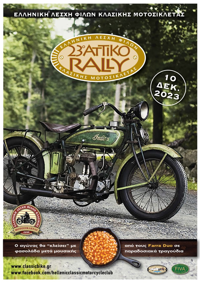 Η Ελληνική Λέσχη Φίλων Κλασσικής Μοτοσικλέτας διοργανώνει το 23ο Αττικό Rally, μια ημερήσια εκδήλωση με κλασσικές μοτοσυκλέτες στην Αττική.