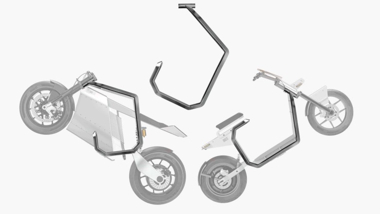 Όλα ξεκινούν με αυτό το ανοιχτό πλαίσιο. Όταν βρίσκεται με το άνοιγμα στραμμένο προς τα πάνω, χρησιμεύει ως βάση για το CS-1 City Scooter. Η βάση του πλαισίου χρησιμεύει ως δάπεδο και το υπόλοιπο σκούτερ – το μπροστινό άκρο, το ψαλίδι και οι τροχοί, βιδώνονται απευθείας σε αυτή τη δομή.