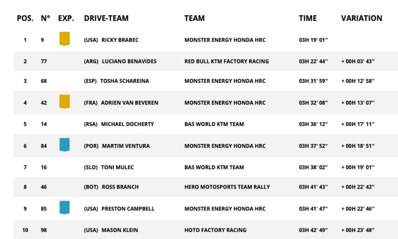 Οι Skyler Howes και Adrien Van Beveren άνοιξαν σήμερα τη διαδρομή, όμως σύντομα άφησαν τους δύο μονομάχους να δώσουν τη μάχη τους στην κορυφή. Οι δύο αναβάτες της Honda σημειώθηκαν με καθυστερήσεις άνω των 24 και 13 λεπτών αντίστοιχα. Το γεγονός ότι ο Αμερικανός έκοψε ρυθμό δεν τον εμπόδισε να ανέβει μία θέση στη γενική (στην 4η), επωφελούμενος από την πτώση απόδοσης του Αυστραλού Daniel Sanders, ο οποίος λόγω του τραυματισμού στον ώμο υποχώρησε στην 5η θέση. Ο Γάλλος Van Beveren ακολουθεί αμέσως πίσω του, στην 6η θέση, με διαφορά οκτώ λεπτών.
